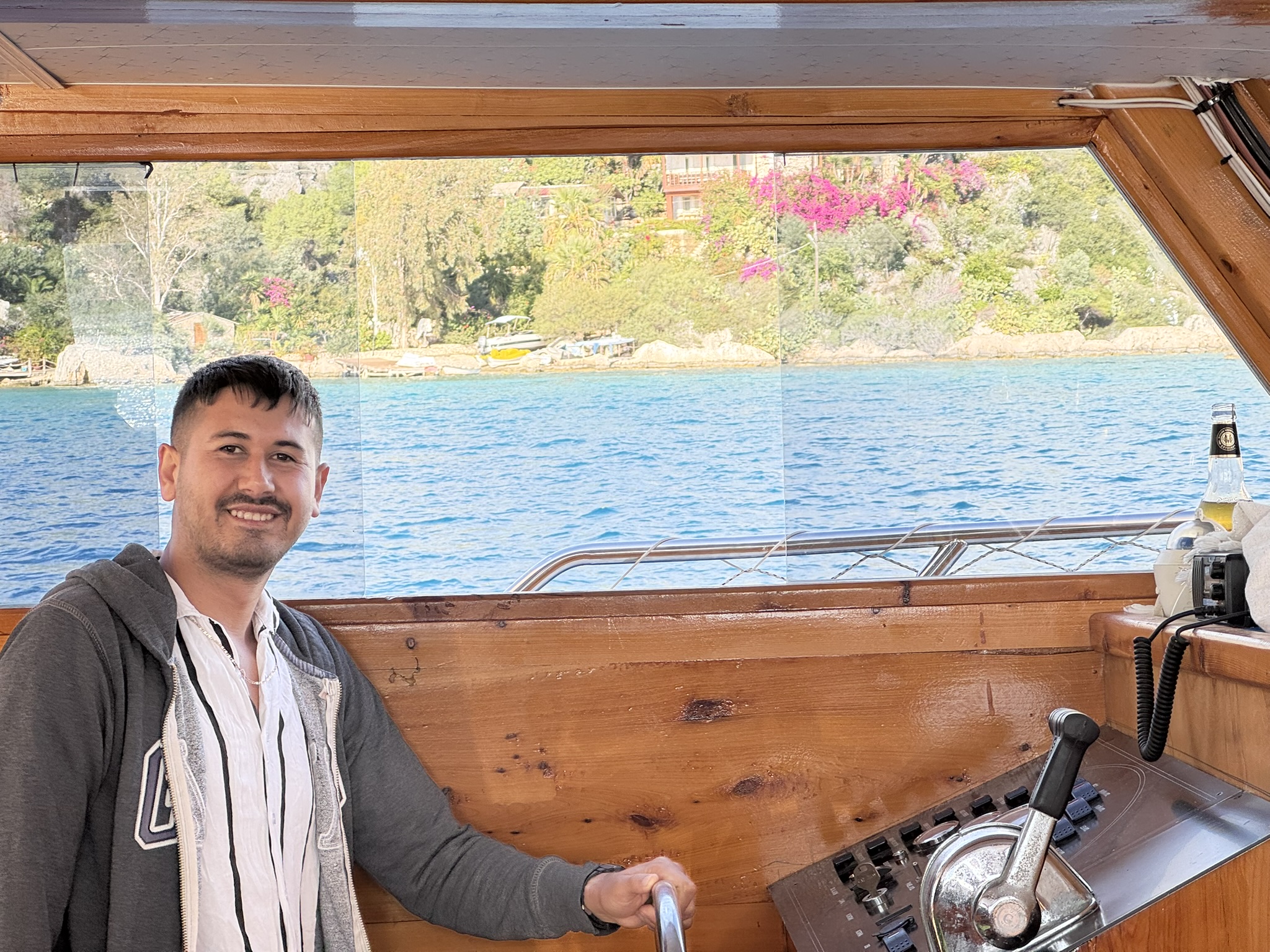 She's 14 metres - the perfect size for Kekova. Big enough to be comfortable, small enough to reach the places the larger boats can't. Built in the traditional wooden style authentic to these waters, she's been a second home to me for years, and I keep her that way: spotless, well-maintained, and ready for the sea every single morning. On board you'll find a proper toilet, a shower, sunbeds, and everything you need for a full day out. And above all else, safety comes first. Always. You can step on board and relax knowing you're in good hands.